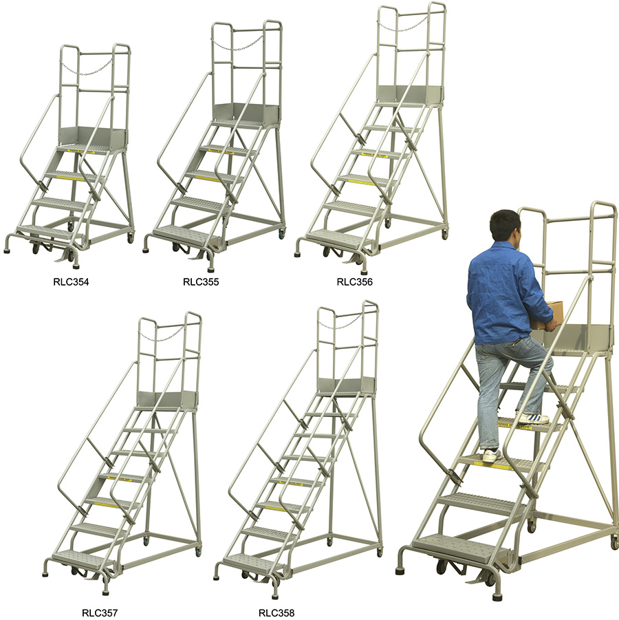 ● 優(yōu)客力配置踏板鎖定機(jī)構(gòu),踩壓底部踏板可自動固定梯子;踩壓底部踏板下方的解除鎖定壓桿,便可輕松移動取貨梯。
